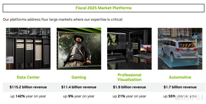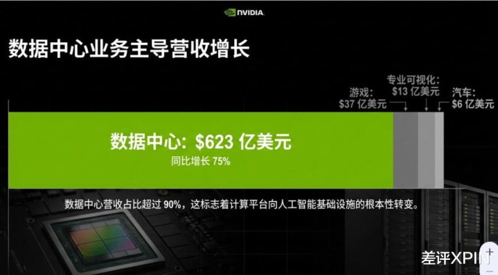 在英伟达昨年 Q4 财报里,数据中心的营收达到了 623 亿好意思元,占比普及 90%,是汽车业务的 100 多倍。
