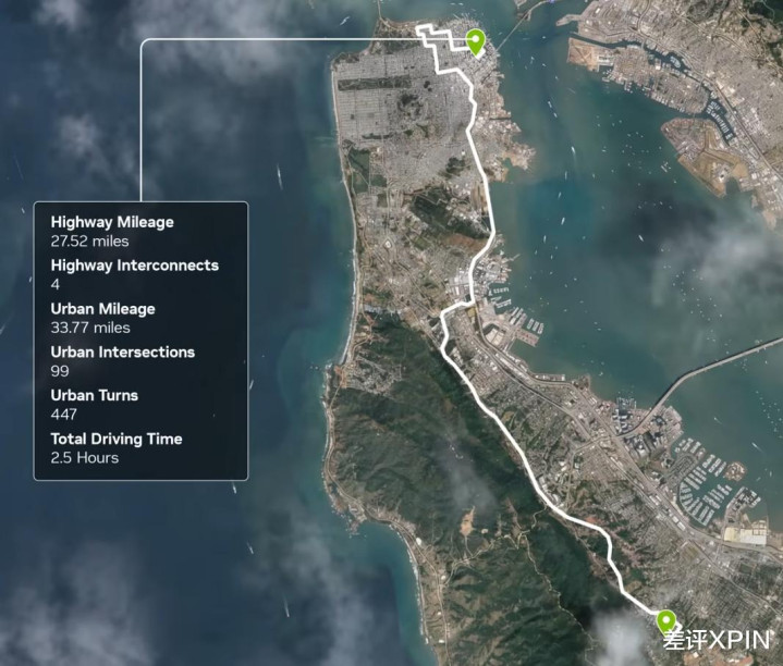 从视频来看,老黄一共走了小 100 公里,2 个半小时的路程。路程不短,路况也挺丰富,行动英伟达智驾的首秀,脖子哥嗅觉照旧有点东西的。